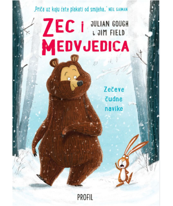 – Ne! Ne! Ne! – reče Zec i svom snagom odgurne Medvjedičinu divovsku snježnu kuglu. Ona se zakotrlja nizbrdo krećući se sve brže i brže i postajući sve većom i većom, a potom se nastavi klizati po zamrznutom jezeru sve dok led nije puknuo. Medvjedičina snježna gruda nestade… uz glasan PLJUS!
